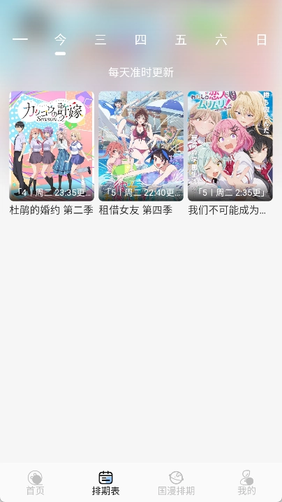 4、点击下方的排期表,即可看到每天准时更新的动漫资源了