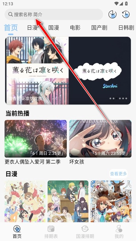 1、打开本站最新版的StarAni,在首页能看到最新的日漫、国漫等板块内容。