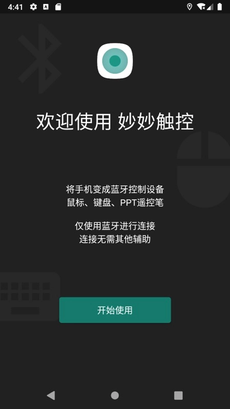 1.在本站安装妙妙触控App,打开应用点击“开始使用”