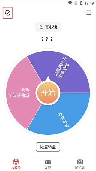 2、该转盘既能够直接使用,也能自行设置。点击右上角的三横图标。