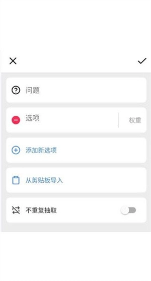 5、直接点击模板就能进行修改,点击红色符号可执行删除操作,点击权重能够设置选项在转盘中的大小,点击添加新选项则可增添更多选择。