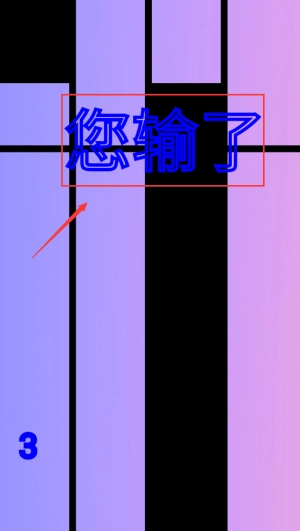 3、要是节奏太快,黑色方块过线了就结束,点击屏幕中间重新开始。