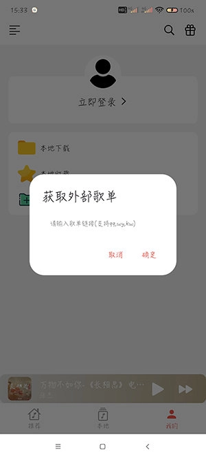 3、将歌单的分享链接复制在这里,点击确定就可以导入。
