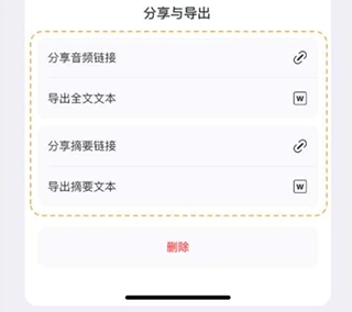 6、音频录制结束后,将自动生成会议记录,一键分享音频和文本