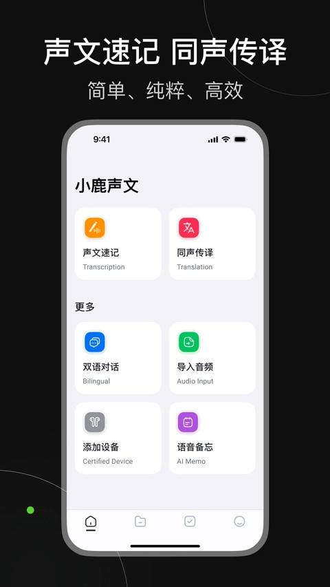 小鹿声文是一款极为出色的软件,它具备实时录音转写翻译与语音备忘功能。这款软件融合了实时录音转写及翻译、语音备忘、AI语音降噪、智能会议纪要、云文档、加密分享等众多功能,能够达成会议大屏、Pad、Web、手机端等多平台协同的会议声文记录,助力用户更高效地开展办公。