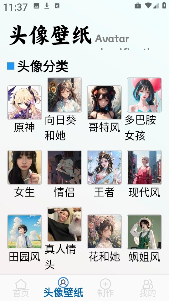 1. 点开仙女头像后,从各个风格版块的头像中任选其一进入。