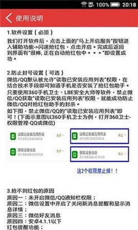 2、急速抢红包:通过智能化手段,大幅提升手机运行内存与反应速率,实现真正意义上“光的速度”抢红包!