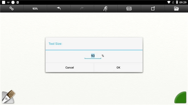 使用三个手指进行上下拖动来改变画笔大小。