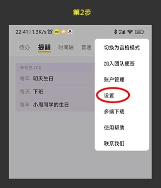5、可对便签设置单次提醒,或按循环模式设置提醒,循环模式包括每天、每周、每月、每年以及农历相关的提醒。