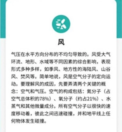 3、涵盖与天气相关的知识科普内容,帮助用户增加知识