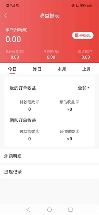 2. 在此处即可查看收益,各位可点击“余额明细”与“提现记录”,以更深入了解这些记录。