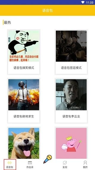 2. 启动运行之后,点击主界面下方的“语音包”,就能查看系统为你准备的趣味语音文件。