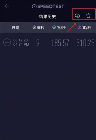 5、测试结果中的工具图标,可以将测试结果导出并发送,也可以删除测试结果