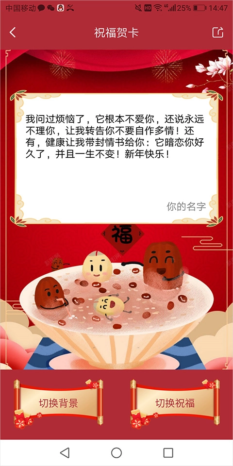 可以生成分享新年祝福语,制作新年祝福贺卡。