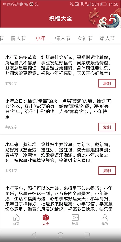 提供节日祝福、表白、感谢、邀请等多种场景的祝福文案,随时可复制使用。
