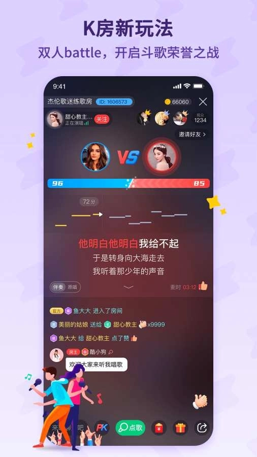 3、安装酷狗唱唱斗歌版,能展现卓越的歌唱实力,可与其他歌迷在K歌中一较高下,还能分享美妙嗓音。