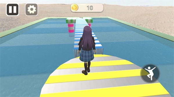 1. 借助操作使樱花少女在赛道上进行跳跃动作,从一块方块跃至另一块方块。