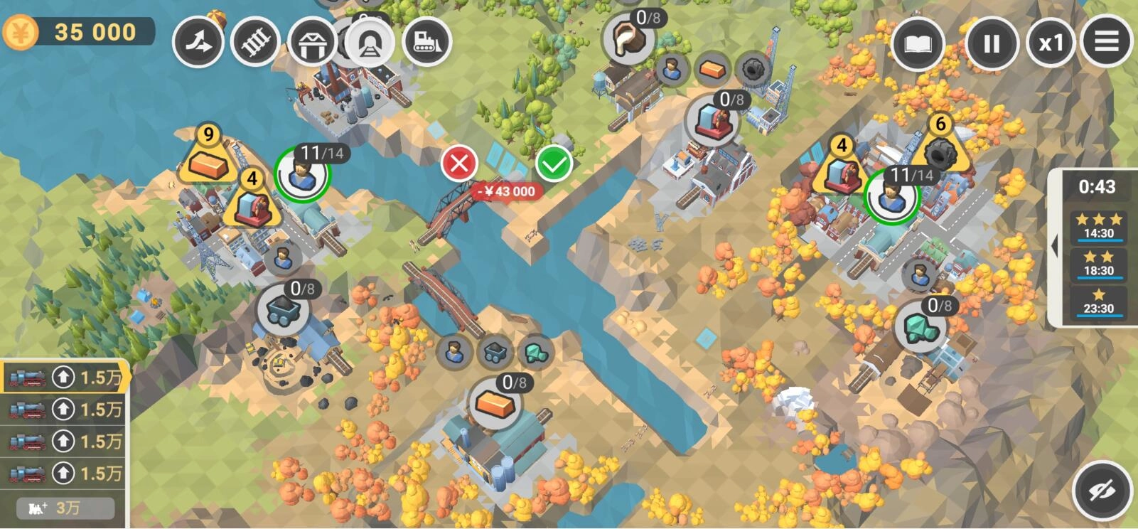 1. 铁路建设与规划:游戏伊始,玩家需挑选地形,规划铁路线路,按需铺设轨道、修建车站。借助收集资源与资金,循序渐进地拓展铁路网络,洞悉不同城市的运输需求,从而更优地配置线路。