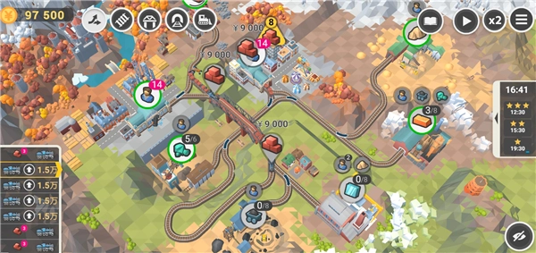 《铁路规划新星》是一款关卡类铁路模拟游戏,它移植自Steam平台的《火车山谷2》(Train Valley 2) 。这款游戏着重考验玩家的策划与设计能力,在每个关卡里,玩家都得精心规划铁路路线,明确火车的起点与终点,确保火车平稳行驶。而且,每次搭建路线时,玩家还需综合考量诸多因素,像地貌、地质条件、交通需求以及资源分布等,避免因突发状况造成不必要的损失,甚至导致游戏失败。