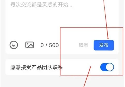 3. 在跳转至的新界面里,输入反馈内容,接着点击“发布”,就能完成意见反馈的提交操作。