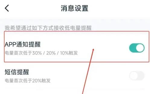 2.在设置界面中点击“低电量提醒”