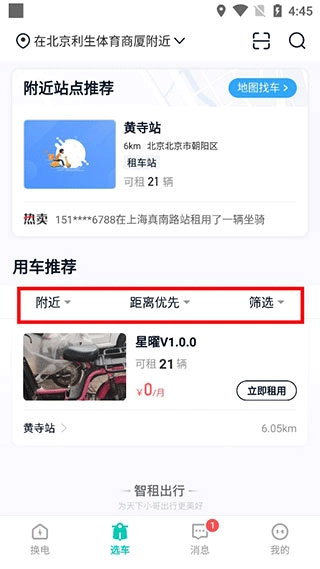 2.挑选距离自己最近的车子,点进去