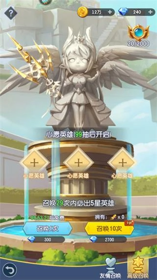 6、另外,玩家还可在主城女神召唤中召唤新的英雄角色。