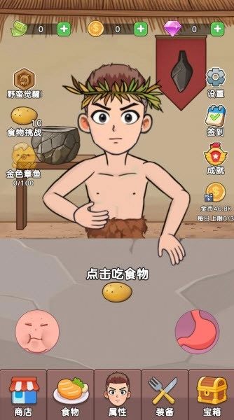 轻点屏幕就能享用食物。要是进食过量,别忘了点击嘴巴及时进行咀嚼。要是咀嚼速度过快,记得点击肠胃及时消化。提升属性后,便能自动持续进食。