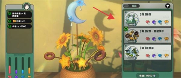 3、场景应对策略:在社交活动开展前,迅速组装具有高好感度的盆栽(如图3所示);经营过程中,将其替换为高存储量的盆栽;当面临装饰需求时,重点关注造型设计(如月亮或玫瑰造型),借助属性机制来契合场景的具体需求。