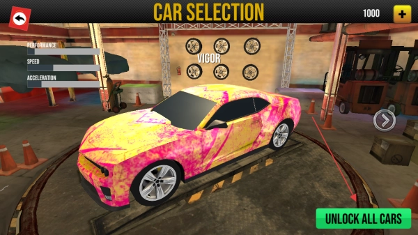 3、查看车辆性能(SPEED等),选心仪赛车,可【UNLOCKALLCARS】解锁,开始比赛。