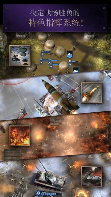 请挑选各阵营已筹备妥当的、带有鲜明指挥风格的支援、空降、要塞化及突击等策略,并主动发挥强力的指挥技能!策略是赢得胜利的核心要素!