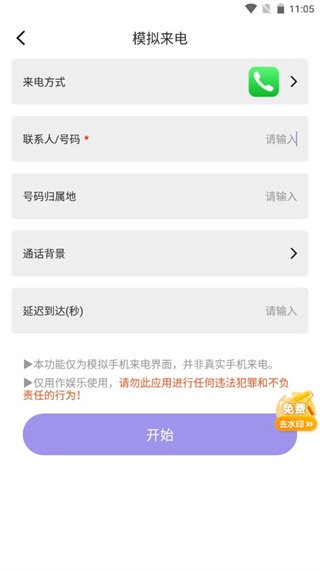 比如,以“虚拟来电”功能为例:进入对应界面后,认真填写所需的各项内容,再点击启动按钮。
