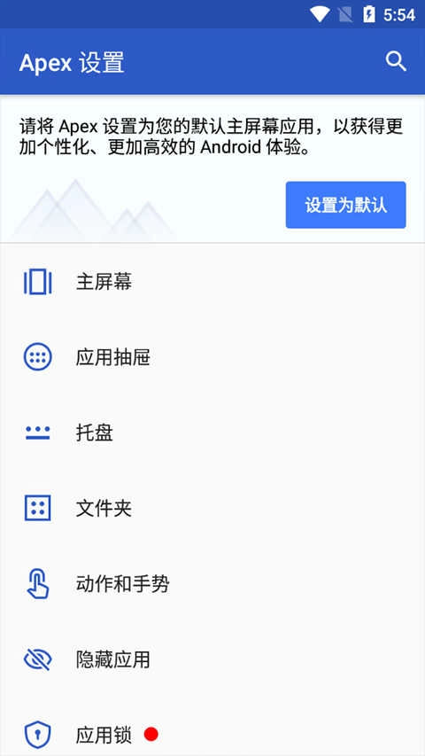 Apex Launcher的界面超级简洁,看起来更加干净整洁,查找应用很方便,而且可以随意设置,操作十分便捷。