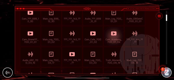 在界面右侧,有一个红色按键,点击它就能进入查看该角色相关资料的系统(即OS系统),这个系统和故事系统iM共同组成了Cytus Ⅱ的游戏剧情。最右侧带有该角色标志的灰白按钮,点击后呈现的内容与游戏状态相似,只是范围从全部曲目缩小到了你所选择的角色;而右下角的设置按钮,其功能与前文提到的设置功能一致。