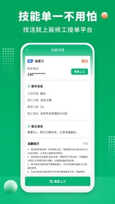 信息发布:装修师傅能够在平台上发布个人信息与作品,以此展现自身的专业能力和实力,从而吸引潜在客户。