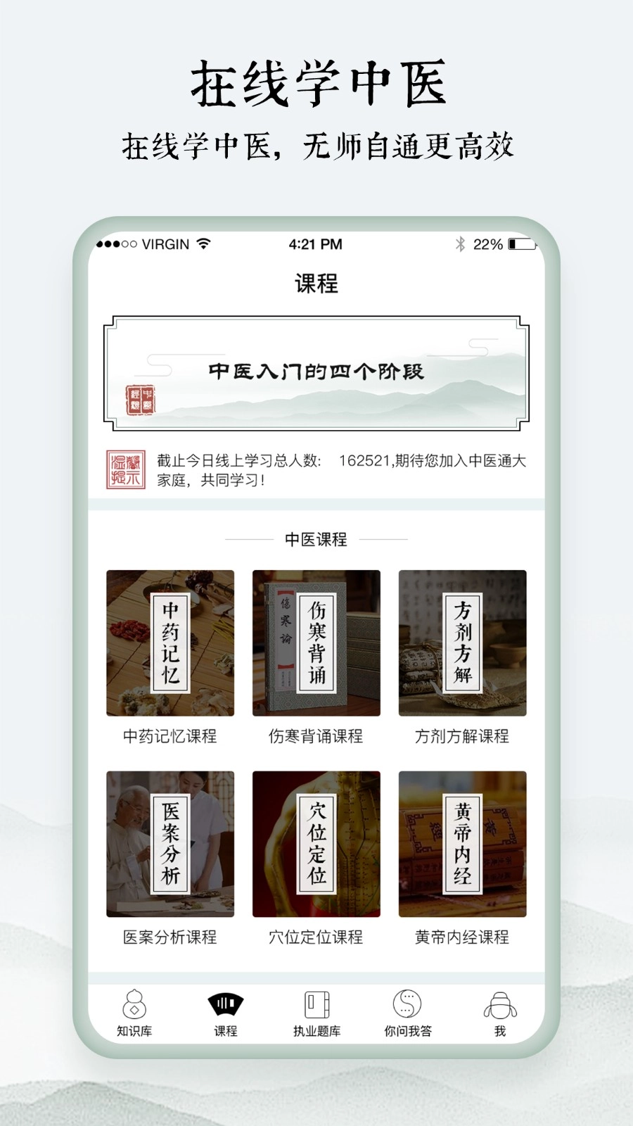 经典课程板块:为用户提供中药、方剂、伤寒论、医案分析、穴位定位、黄帝内经等在线学习资源,助力大家更深入地掌握中医理论知识与临床实践技能。
