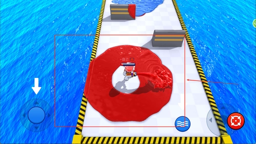 1、游戏开始后,先选择模式进入战场,随后通过滑动屏幕来操控角色移动,点击对应按钮即可发射喷水枪,或是使用其他涂色类武器对敌人与地面发起攻击。
