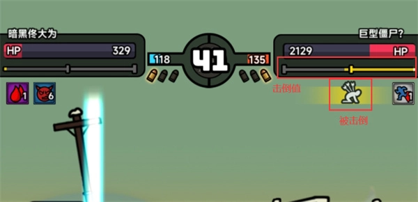 战斗中有关当前累计击倒值状态的信息可在血条下方查看: