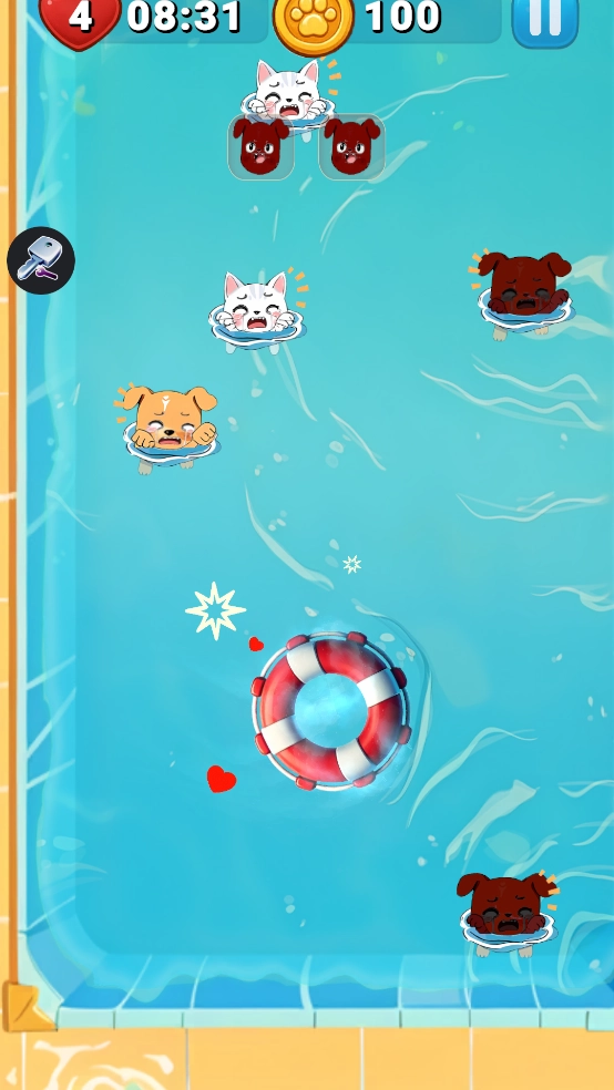 拯救动物游戏(Pup.io)是一款趣味十足且操作简便的休闲游戏,用来打发时间再合适不过。游戏规则简单易懂,一局仅需几十秒就能结束,而且包含大量关卡。玩家在游戏里只需操控救生圈,按照提示套住目标动物即可,玩法十分简单。不过要注意,如果不小心套到了其他动物,就会扣除爱心奖励哦。