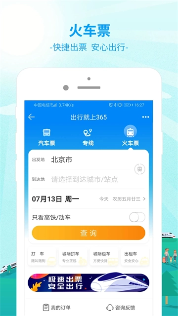 出行365能让用户及时在线购买到心仪的各车次车票,软件涵盖的班次十分齐全,支持直接购票与退票操作。除了作为优质的高铁购票工具,它还提供景点门票购买、各类周边服务查询等功能,并且会推出丰富的优惠活动。
