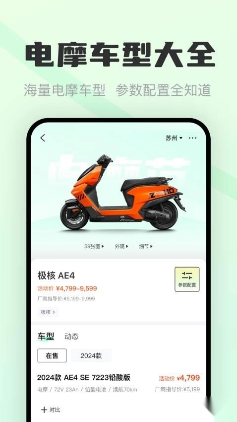 用户能够搜索各类型号的电动摩托车,知晓不同车辆的具体详情。