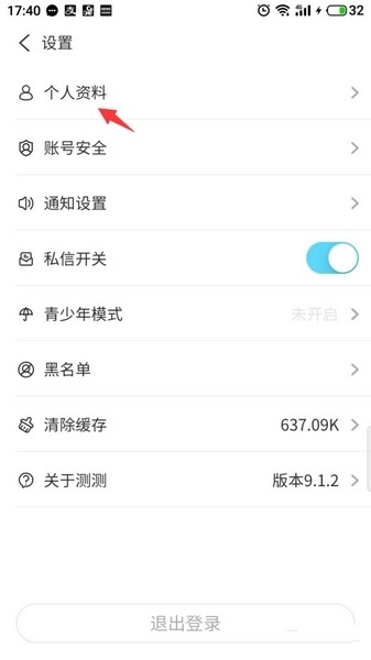3、点击进入选择个人资料。