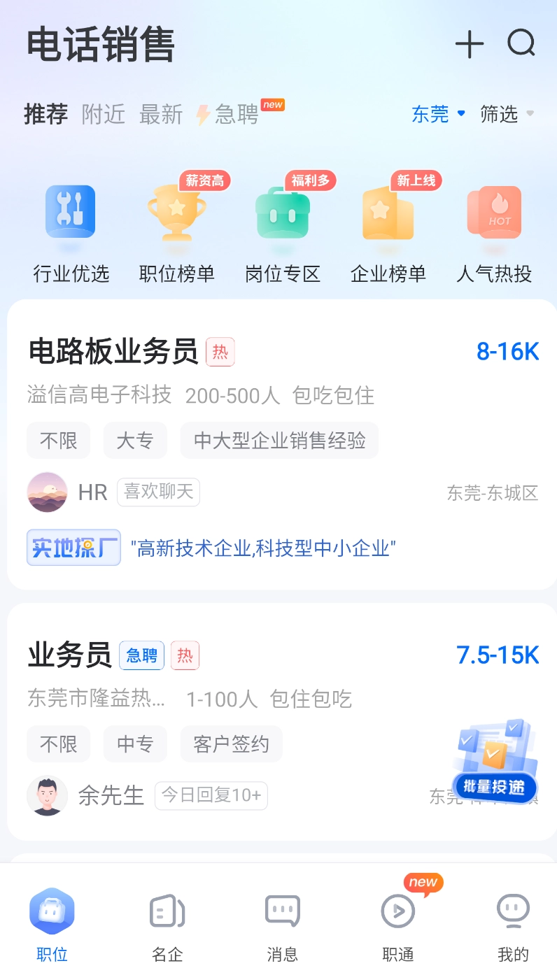 智通直聘深耕广东东莞制造业招聘赛道,精准链接企业与求职者双方需求:企业可便捷发布岗位信息,求职者能一键生成优质简历;平台覆盖广东多个行业的岗位资源,同时提供简历隐私保护功能,致力于为本地制造业人才供需双方搭建高效对接的桥梁。