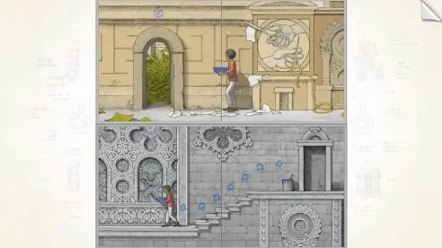 《画中世界》讲述了一个蕴含深刻意义与哲理的故事。故事以一位充满好奇心的少年为主角,围绕他寻找神秘巨兽的历程展开,在这一过程中,少年也逐步完成了对自我的探寻与认知。游戏采用非线性的叙事手法,呈现出主角从年少到年迈的成长蜕变,以及他为追逐心中梦想所遭遇的重重挑战与付出的不懈努力。