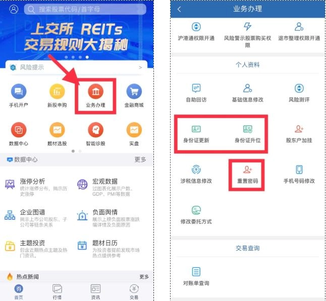 开通交易权限、修改个人资料、查询交易情况,涵盖四大模块、16项业务,现已全面支持线上移动办理,为您带来便捷高效的服务体验!