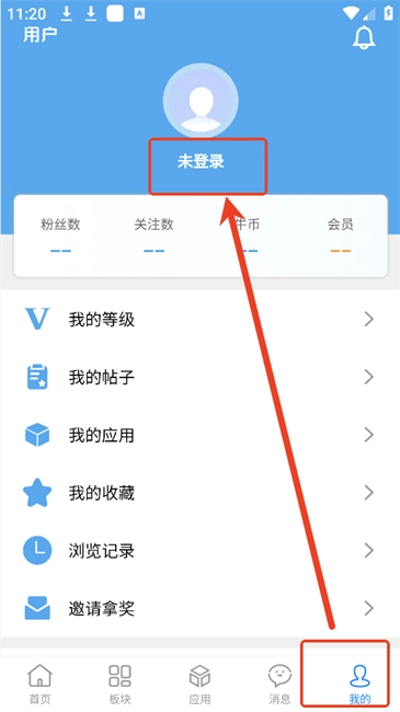 1.进入软件后点击【我的】--“未登录”