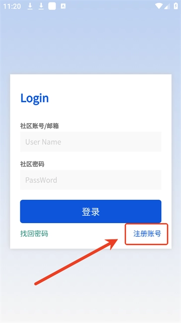 2.在登录页面点击右下角的“注册账号”