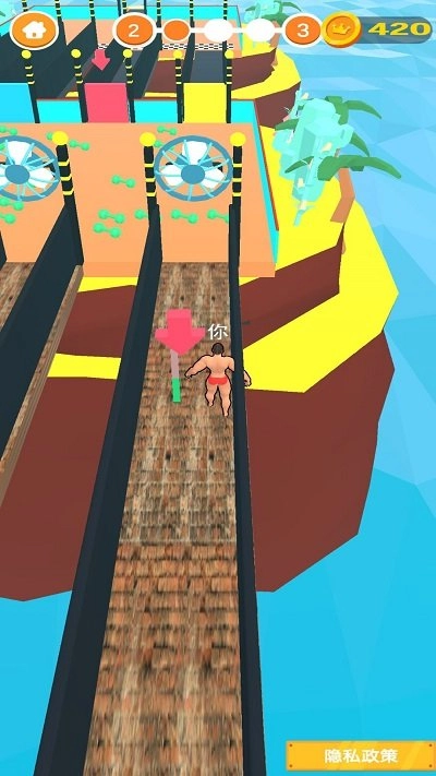 1、魔性角色设计:操控肌肉发达的主角进行跑酷,夸张的造型带来强烈的视觉冲击力。