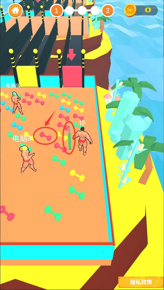 2、通过滑动屏幕来操控角色移动,收集哑铃之类的器械;触碰到器材就能积累能量条,能量条数值越高,角色的爆发力也就越强。