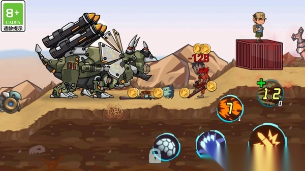 1、经典横版玩法与机甲恐龙题材相结合,既延续了合金弹头式的爽快体验,又凭借新颖设定带来别样视觉震撼;